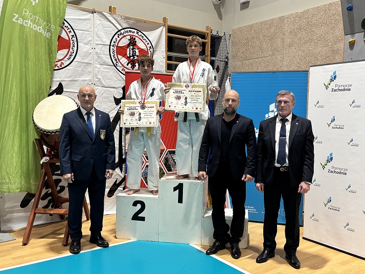 Adam Szydłowski – w kategorii kumite młodzików do 55kg. Już w pierwszych sekundach walki finałowej Adam zdobył waza-ari po precyzyjnym mawashi geri jodan (okrężnym kopnięciu na głowę), które zaskoczyło jego przeciwnika. Nie zwalniając tempa, Adam kontynuował ofensywę, kończąc pojedynek efektywnymi niskimi kopnięciami. Techniki te przyniosły mu kolejne waza-ri i zasłużony ippon, dzięki czemu zakończył walkę przed czasem, zdobywając złoty medal w swojej kategorii.