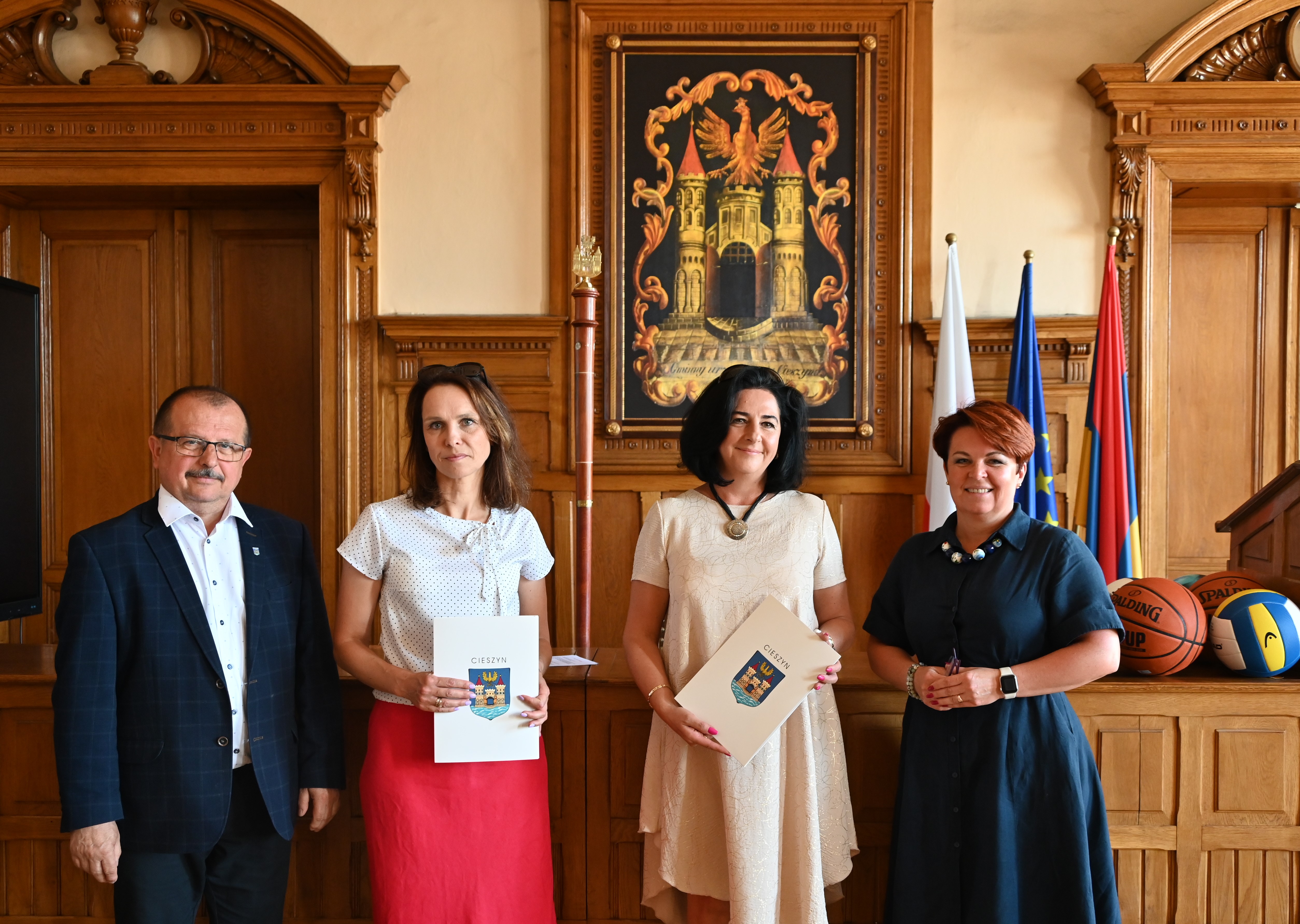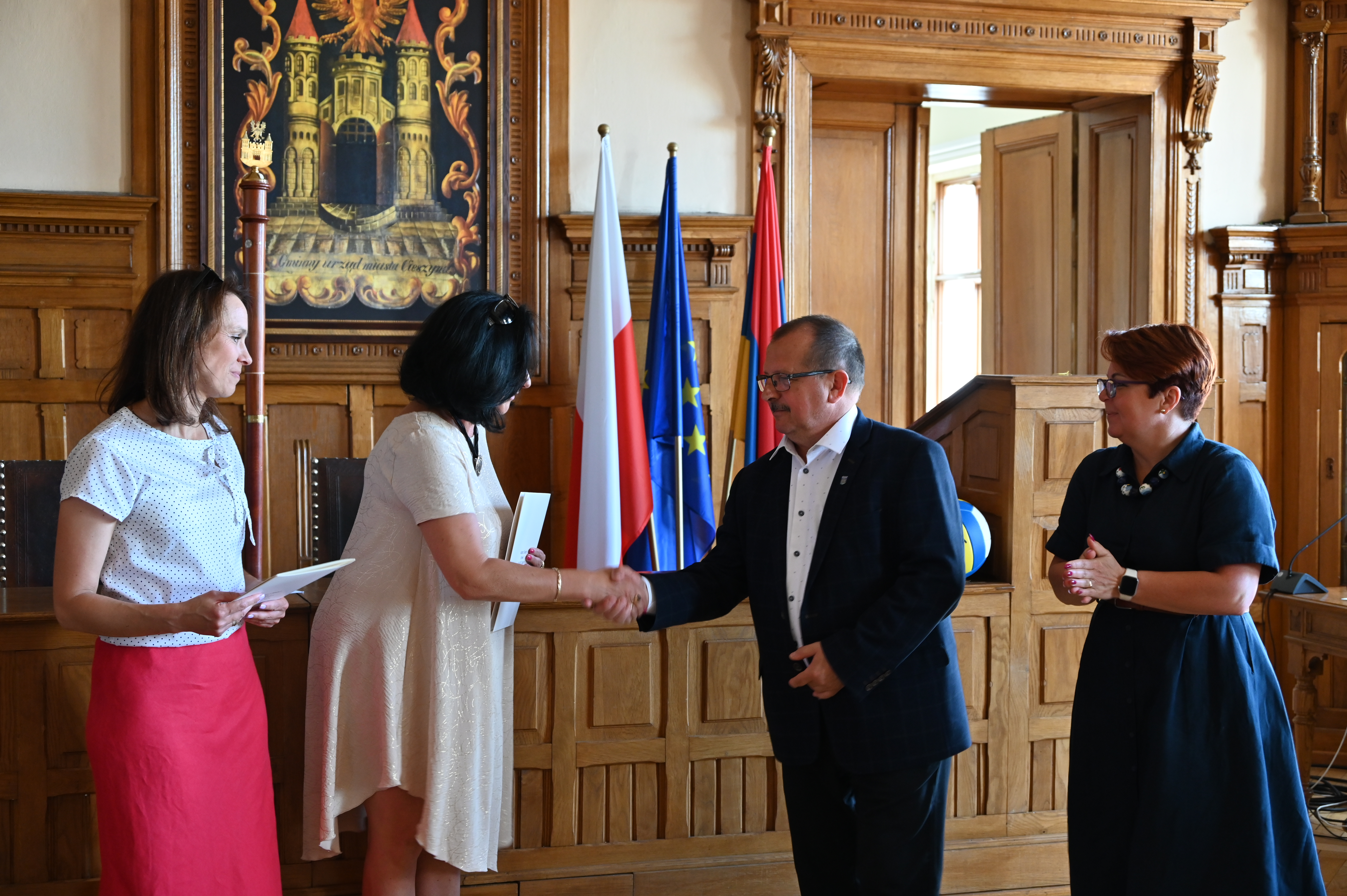 25 czerwca br. w Sali Sesyjnej Ratusza odbyła się uroczystość, podczas której Burmistrz Miasta Cieszyna Gabriela Staszkiewicz wraz z I Zastępcą Burmistrza - Krzysztofem Kaszturą w uznaniu sportowych osiągnięć uczniów w roku szkolnym 2024/2025, wręczyli przedstawicielom Szkoły Podstawowej nr 2 z Oddziałami Integracyjnymi im. 4 Pułku Strzelców Podhalańskich oraz Szkoły Podstawowej nr 3 z Oddziałami Integracyjnymi im. Janusza Korczaka – listy gratulacyjne.